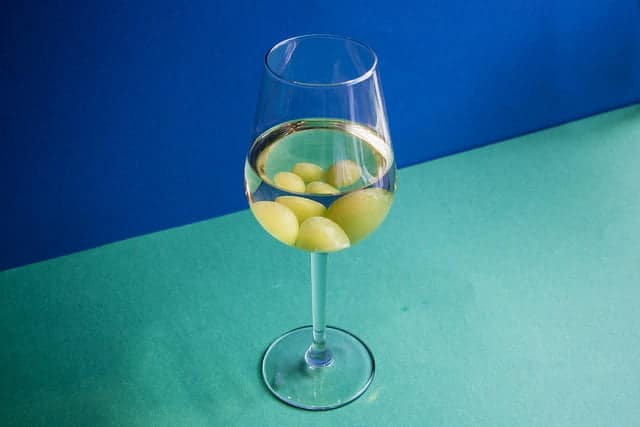 bevroren druiven in de wijn