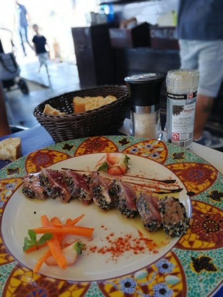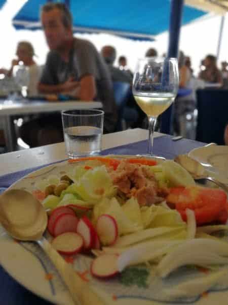 Voor de lunch strijken we lekker neer, in de schaduw, bij Restaurant Xiringuito Neptuno. We moeten wel even geduld hebben, want dit restaurant is ook erg populair onder de locals. Simpele, maar fantastische keuken!
