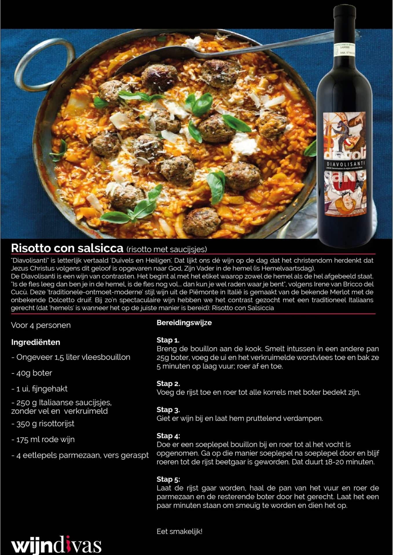 Risotto con Salsiccia met Bricco del Cucù Diavolisanti